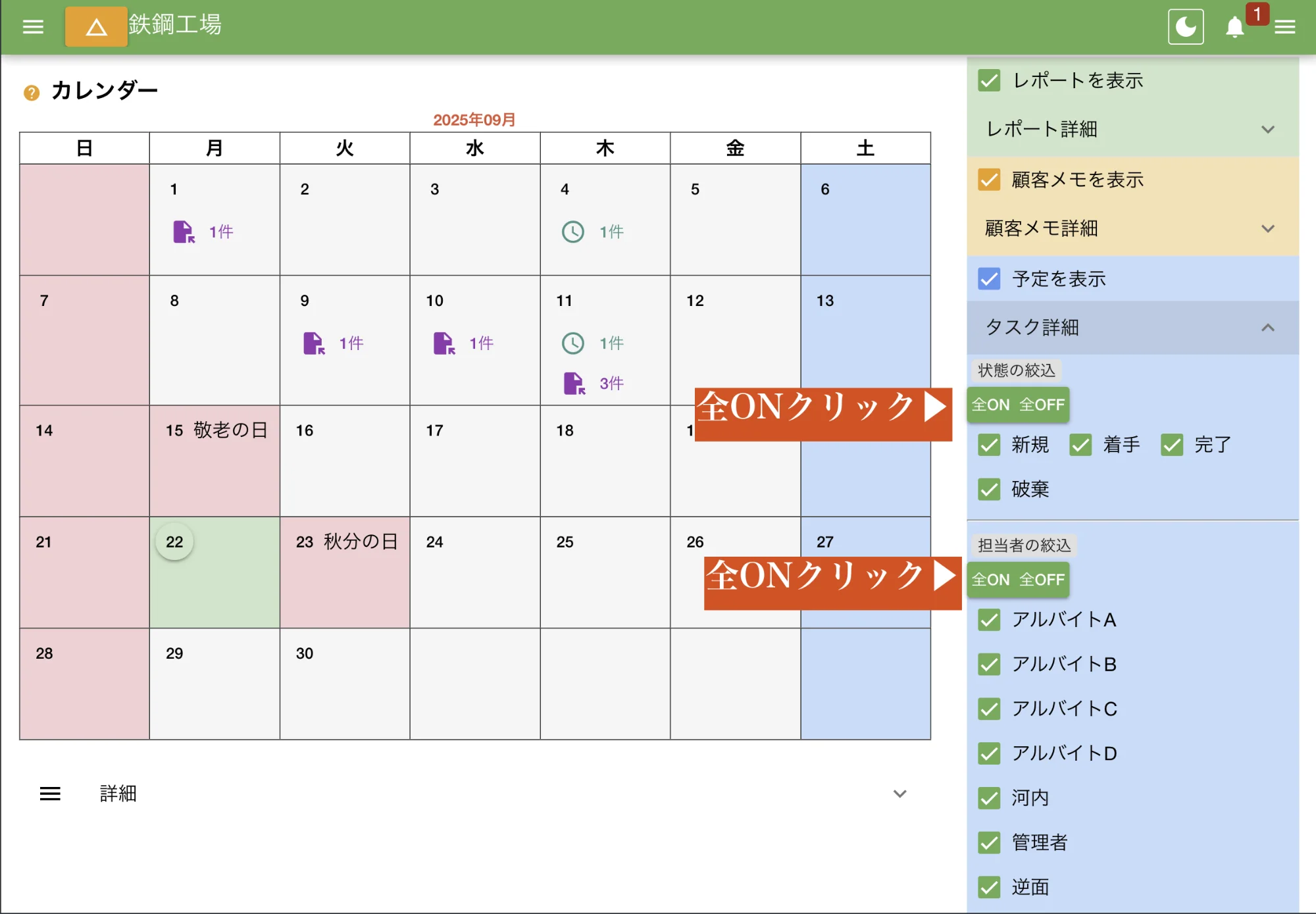 NipoPlusでは「表示する予定・非表示にする予定」を細かく制御できます。 フィルターの設定を見直してみてください。 詳しい手順は添付した画像をご覧ください。